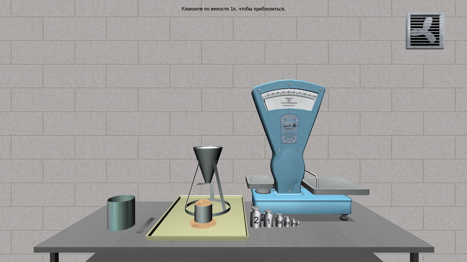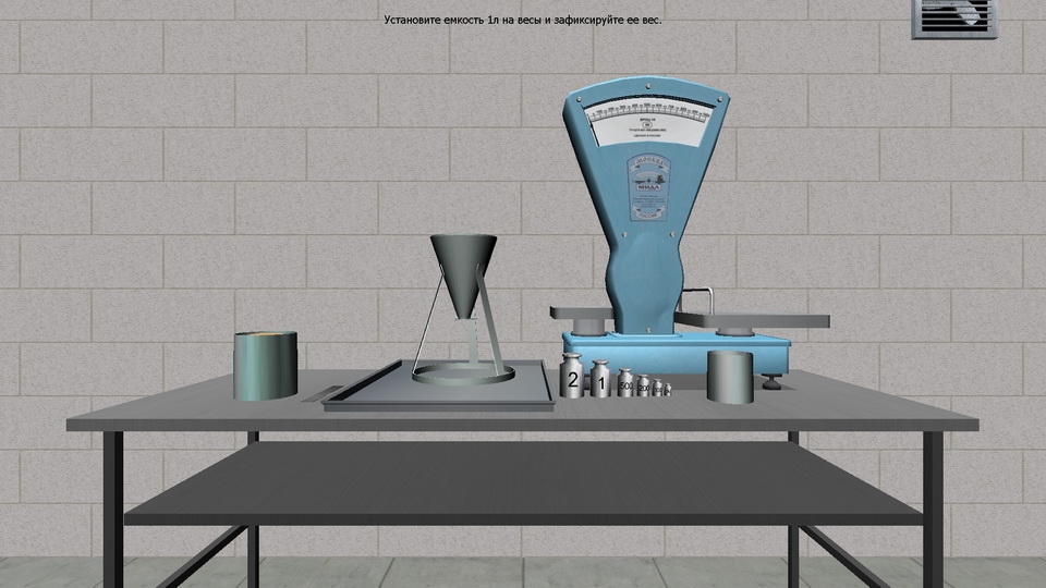 OBJECTIVE: The determination of the bulk density of quartz sand. SUMMARY: The main element of a laboratory installation is a metal cone-funnel, through which a sample of bulk material (sand) is passed. The main task of the experiment is to determine the density of sand in a loose-bulk state. The input parameters of the experiment are the masses of cargo that balance the measured capacity for weighing sand. The output parameter of the experiment is the mass of sand in the tank after backfilling.