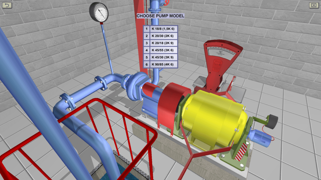 OBJECTIVE: The installation of at least 8-10 different pump operation modes using a gate valve, the opening of which varies from 0 to 100%; the measurement of instrument readings (pressure gauge, vacuum gauge, balance, tachometer and differential pressure gauge) at each mode; the calculation of the parameters to build the pressure and energy characteristics of the pump. SUMMARY: The main element of the laboratory stand is a centrifugal pump with an electric motor. Brand of the pump gets out in the course of work. With the help of a piping system in the installation water is circulated. In the course of work, pressure, water flow, shaft rotational speed and torque of the pump electric motor are measured. To measure the flow of water using a measuring diaphragm and a U-shaped mercury differential pressure gauge.