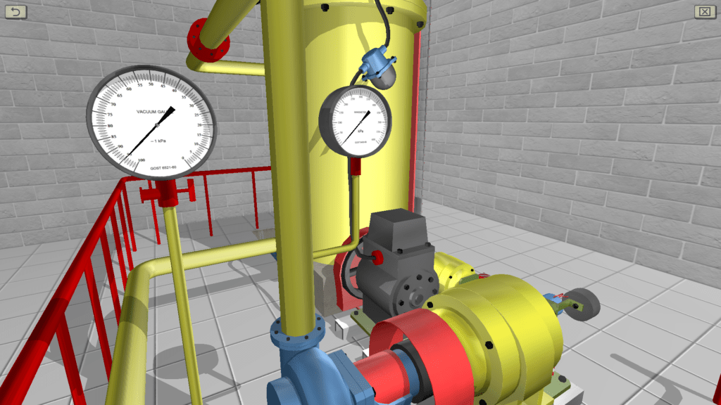 OBJECTIVE: The setup of at least three different modes of pump operation using a valve, the opening of which varies from 0 to 100%; the measurement of instrument readings (pressure gauge, vacuum gauge, tachometer and differential pressure gauge) each time the valve is opened (by sequentially setting the vacuum pressure on the surface of the tank from 0 to 95 kPa); the calculation of the parameters necessary for the construction of the private cavitation and cavitation characteristics of the pump. SUMMARY: The laboratory stand includes a centrifugal pump, a vacuum gauge pump, a sealed tank, a piping system and measuring instruments. Water pressure is measured using spring pressure gauges. Vacuum pressure is measured by means of a vacuum gauge equipped with a pressure relief valve. To measure the flow of water using a measuring diaphragm and a U-shaped mercury differential pressure gauge.