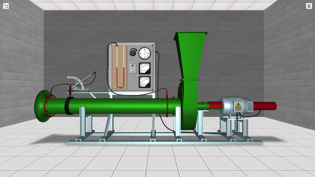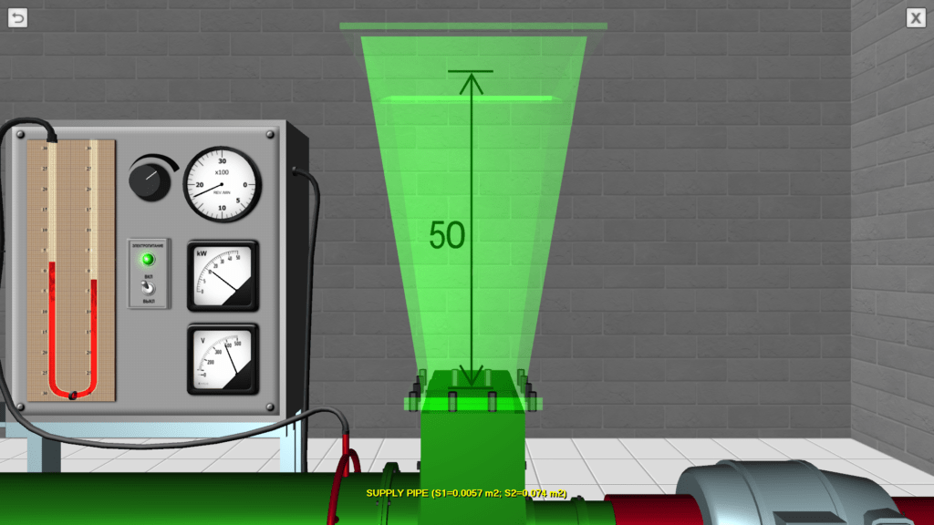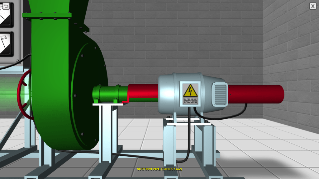 OBJECTIVE: The study the physical process of the passage of air through the manifold under the pressure created by the centrifugal fan and the construction of the main characteristics of the centrifugal fan according to experimental data. SUMMARY: A virtual laboratory stand allows for interactive user participation in the implementation of basic laboratory work. In the process of performing laboratory work, the user makes measurements of the main experimental parameters – airflow pressure in two cross-sections of the suction pipe and in one cross-section of the discharge pipeline, and also reads the tachometer and wattmeter installed on a special measuring board.