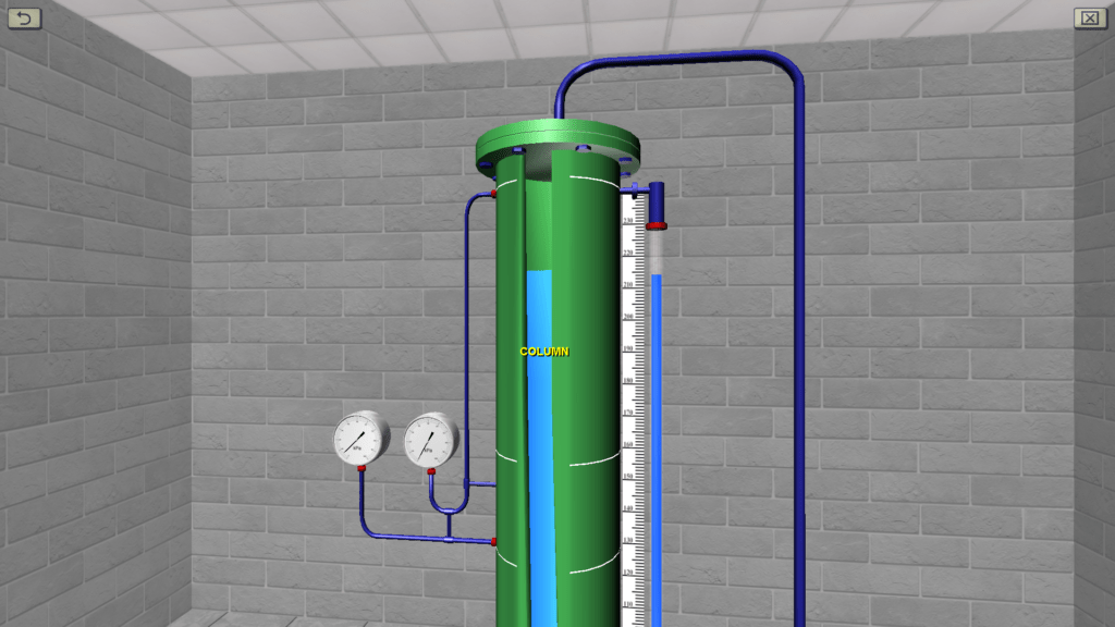 OBJECTIVE: The measurement with the help of spring pressure gauges of hydrostatic pressure at three points of the column, deepened at different values of height the level of the liquid, which is absolutely at rest under the action of gravity; confirmation based on the experimental data of the basic hydrostatic equation and Pascal’s law; plotting the gauge pressure graph versus depth. SUMMARY: The laboratory stand is presented in the form of a vertical column into which water is supplied from the bottom up. Compressed air can be forced into the upper part of the column using a compressor. At three points of the column are connected spring pressure gauges, measuring the hydrostatic pressure of water.