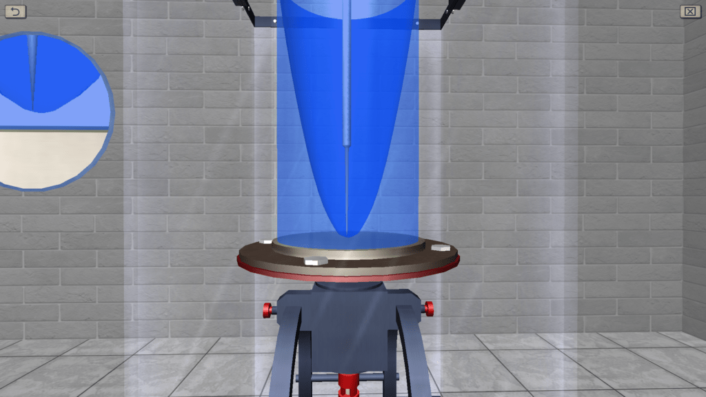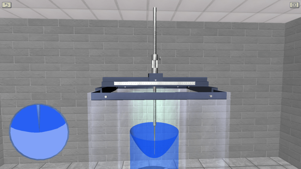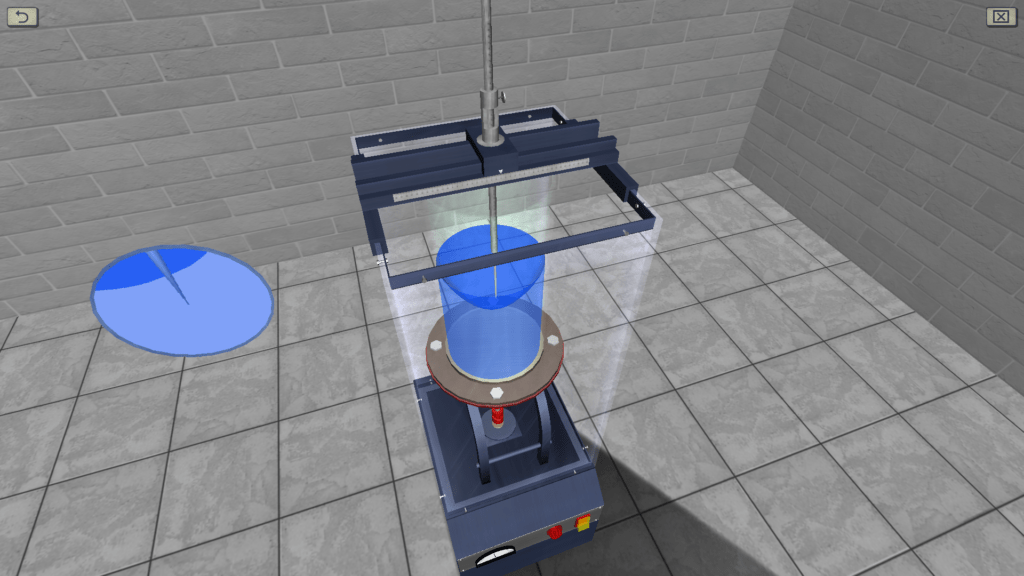 OBJECTIVE: The observation the process of establishing the equilibrium of water in an open cylinder, rotating at a constant angular velocity around the vertical axis; measurement of the coordinates of five points of the free surface of the liquid, located at different distances from the axis of rotation; measuring the height of the paraboloid of rotation and comparing it with the theoretical (with determining the relative deviation). SUMMARY: The laboratory stand consists of a rotating platform on which a water tank is installed. The rotation of the platform is carried out with the help of an electric motor, the rotational speed of which is regulated during operation. Measurement of the marks of the free surface of the liquid is carried out using a measuring needle.