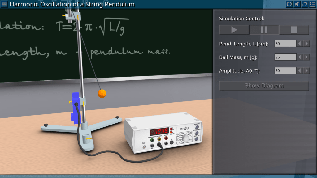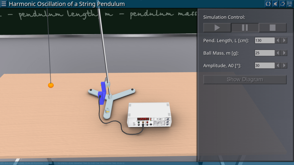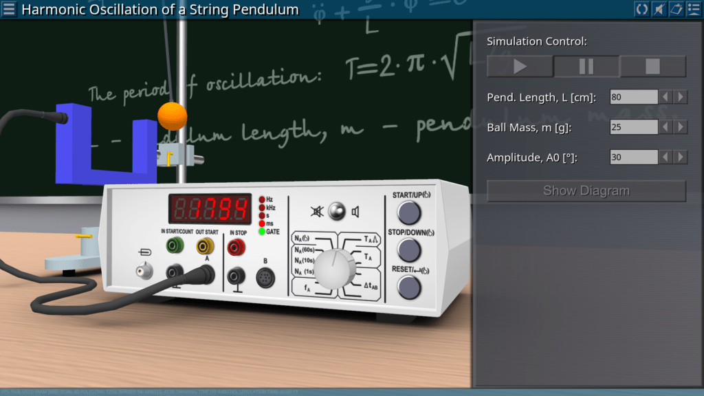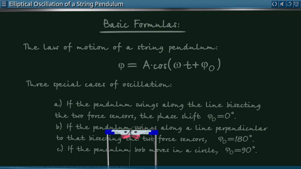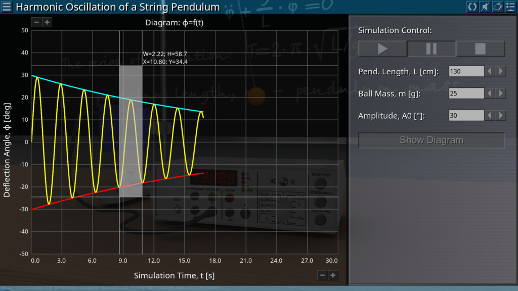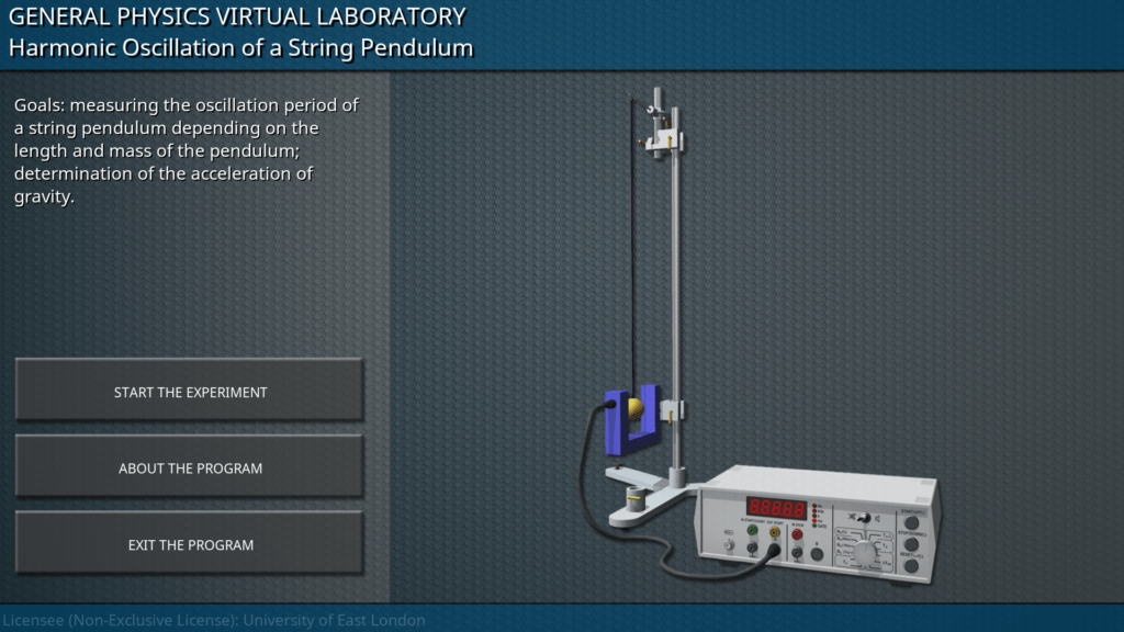 Goals: measuring the oscillation period of a string pendulum depending on the length and mass of the pendulum; determination of the acceleration of gravity.