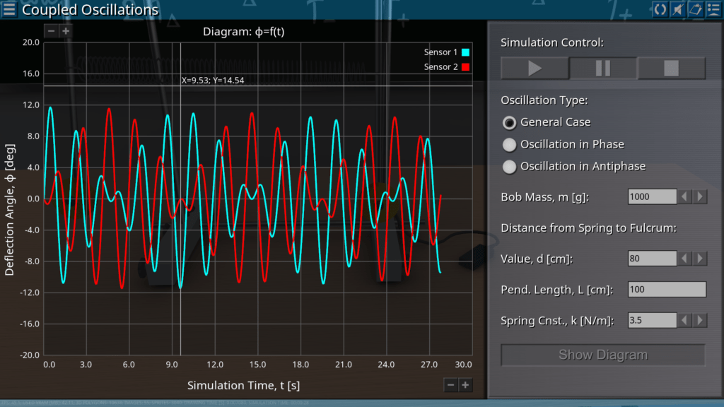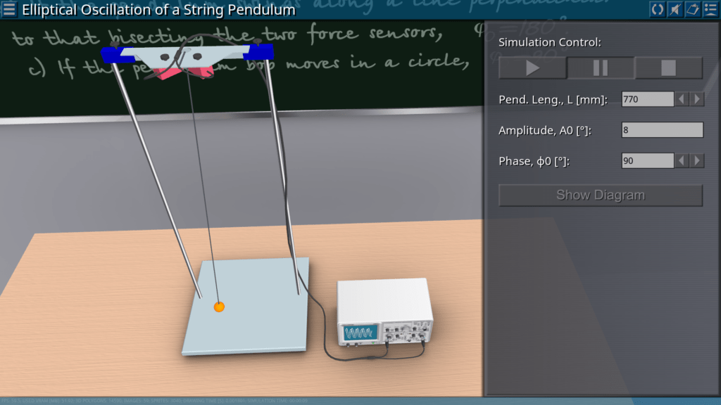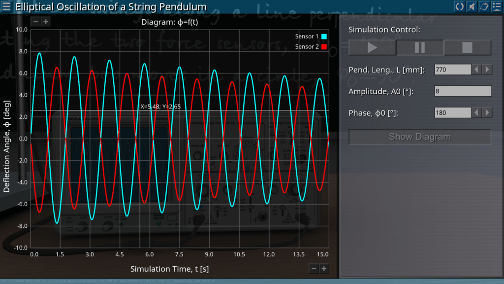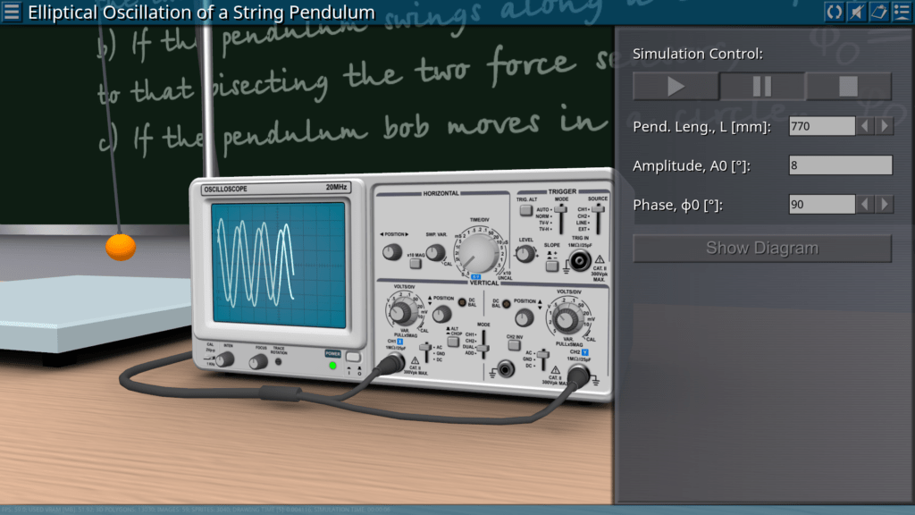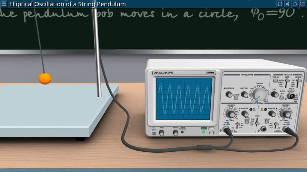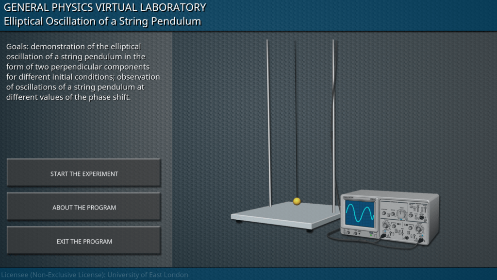 Goals: demonstration of the elliptical oscillation of a string pendulum in the form of two perpendicular components for different initial conditions; observation of oscillations of a string pendulum at different values of the phase shift.