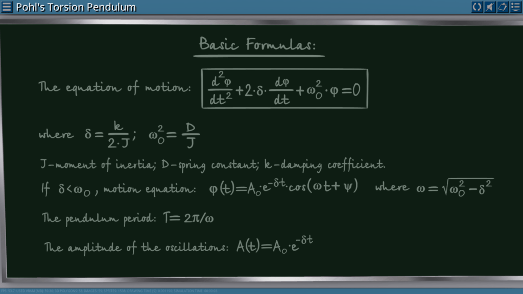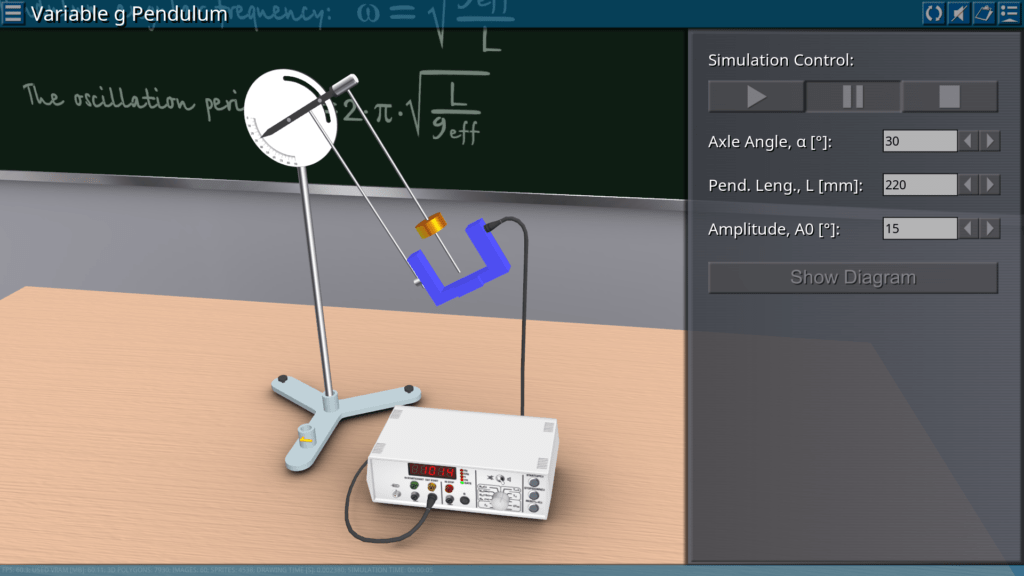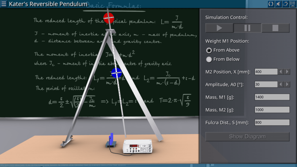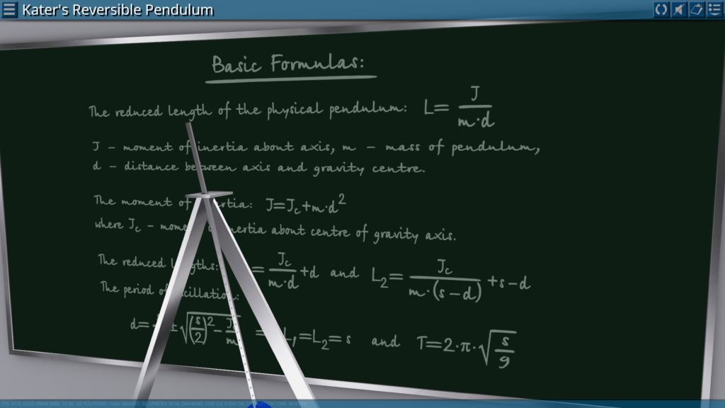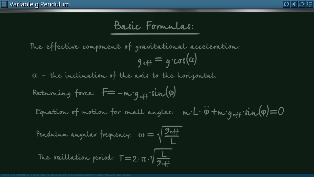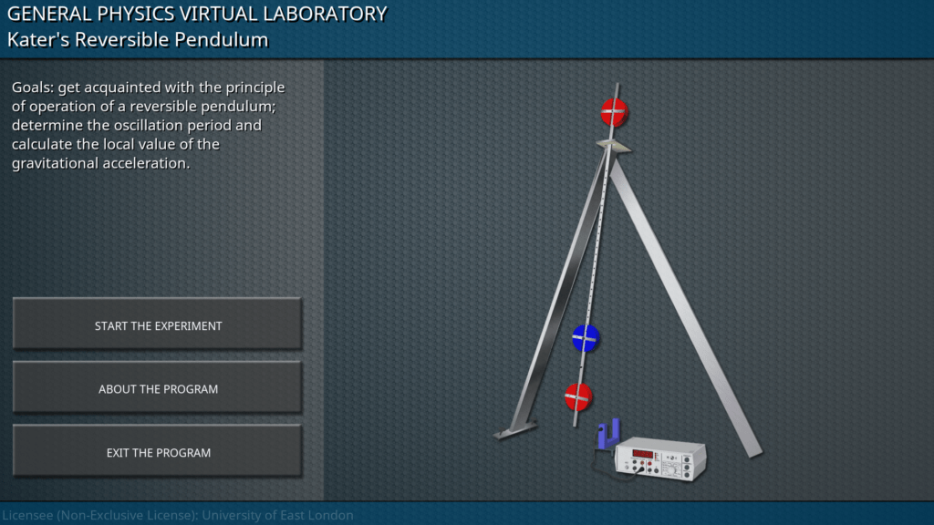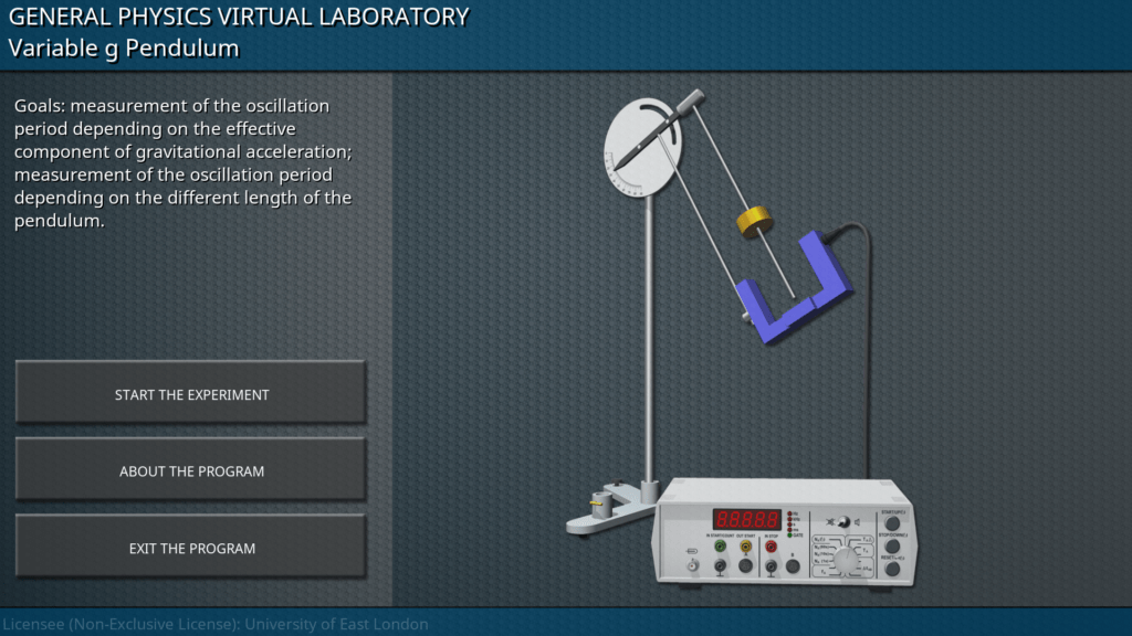 Goals: measurement of the oscillation period depending on the effective component of gravitational acceleration; measurement of the oscillation period depending on the different length of the pendulum.