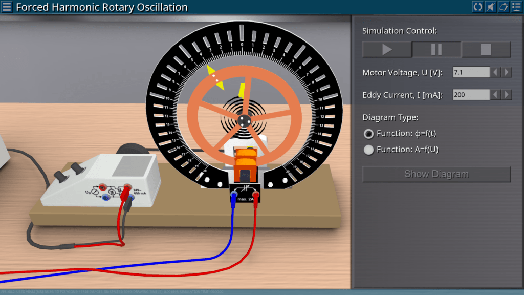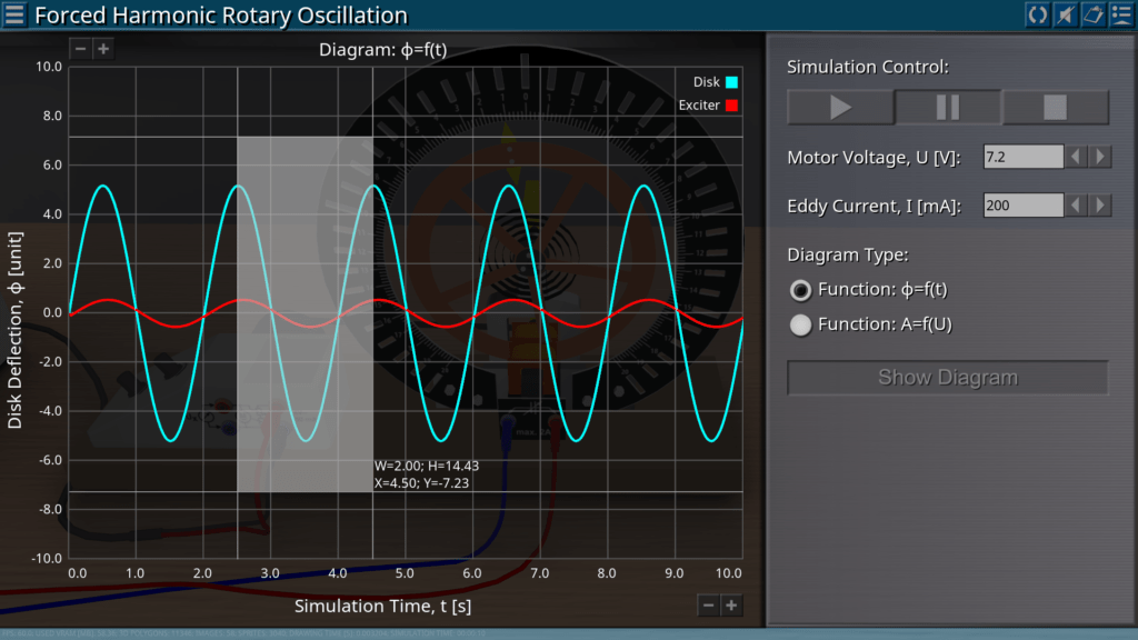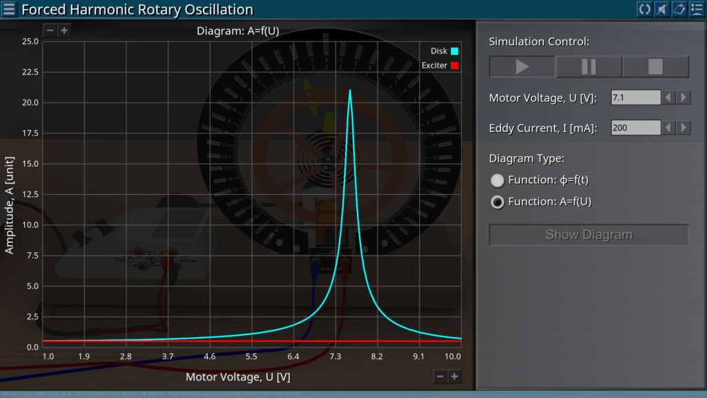Goals: measurement of the amplitude of forced oscillations depending on the excitation frequency for various values of damping; observing a phase shift between excitation and actual oscillations; demonstration of resonance.