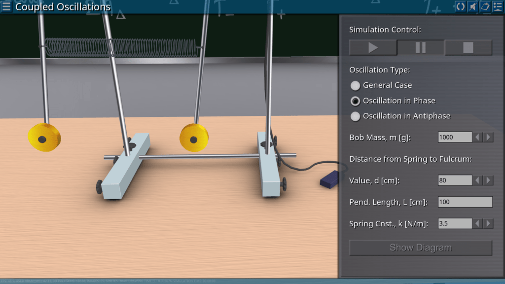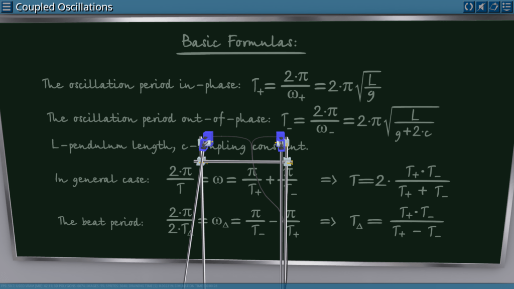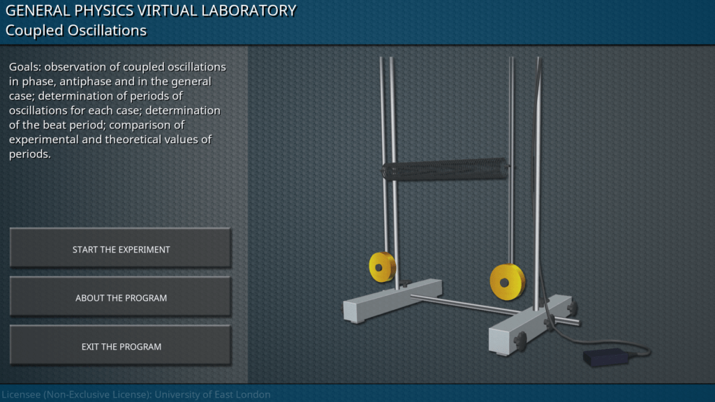 Goals: observation of coupled oscillations in phase, antiphase and in the general case; determination of periods of oscillations for each case; determination of the beat period; comparison of experimental and theoretical values of periods.