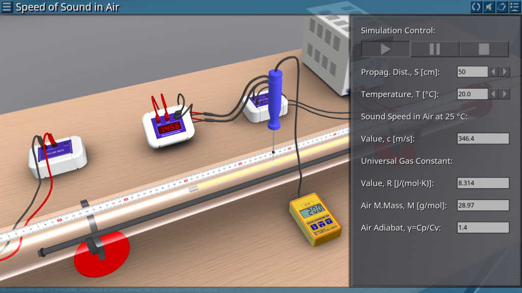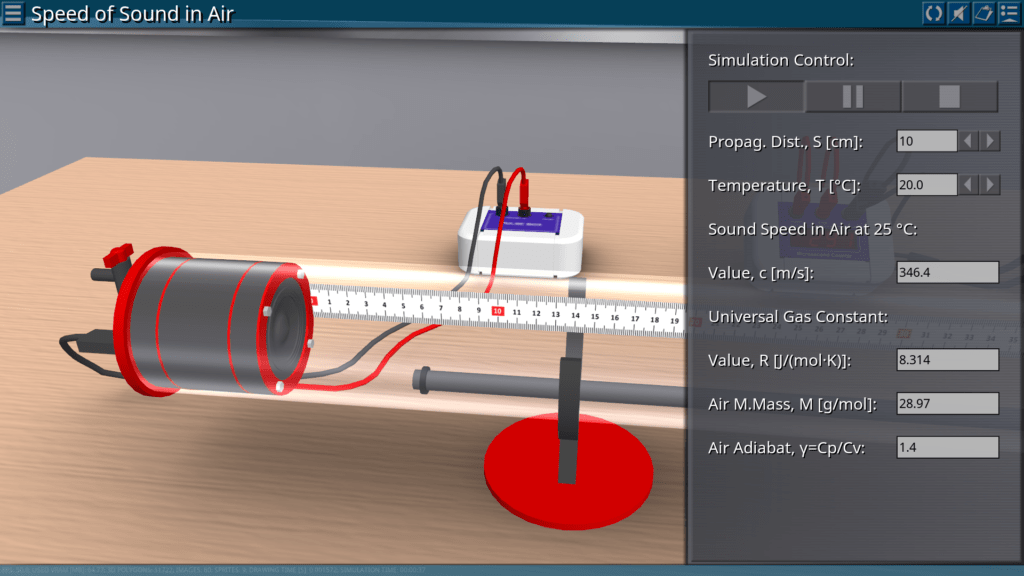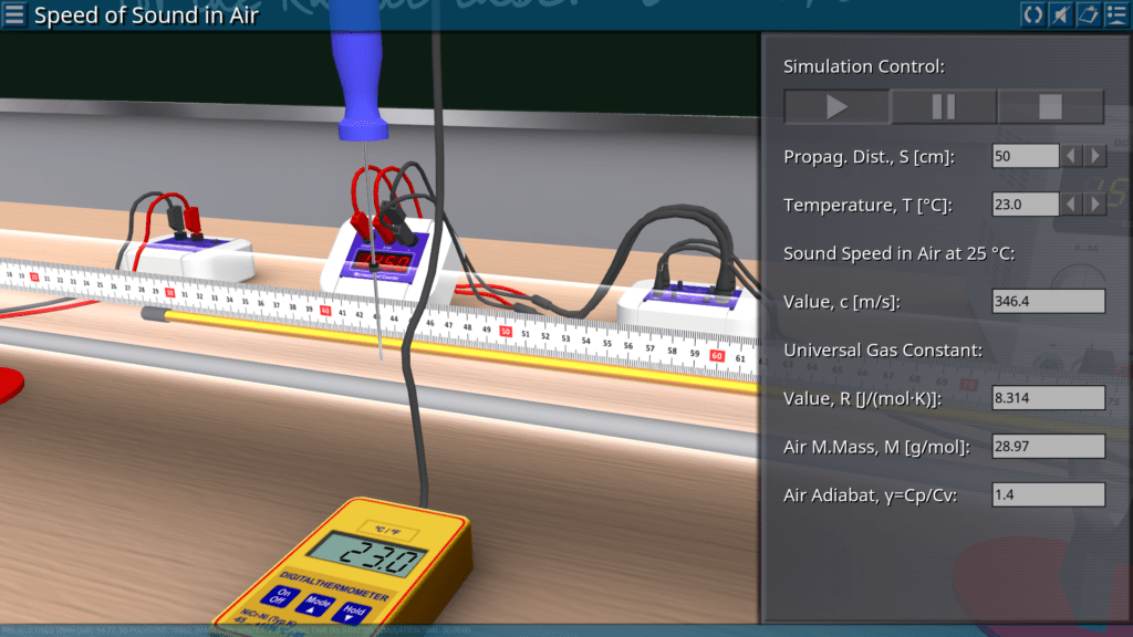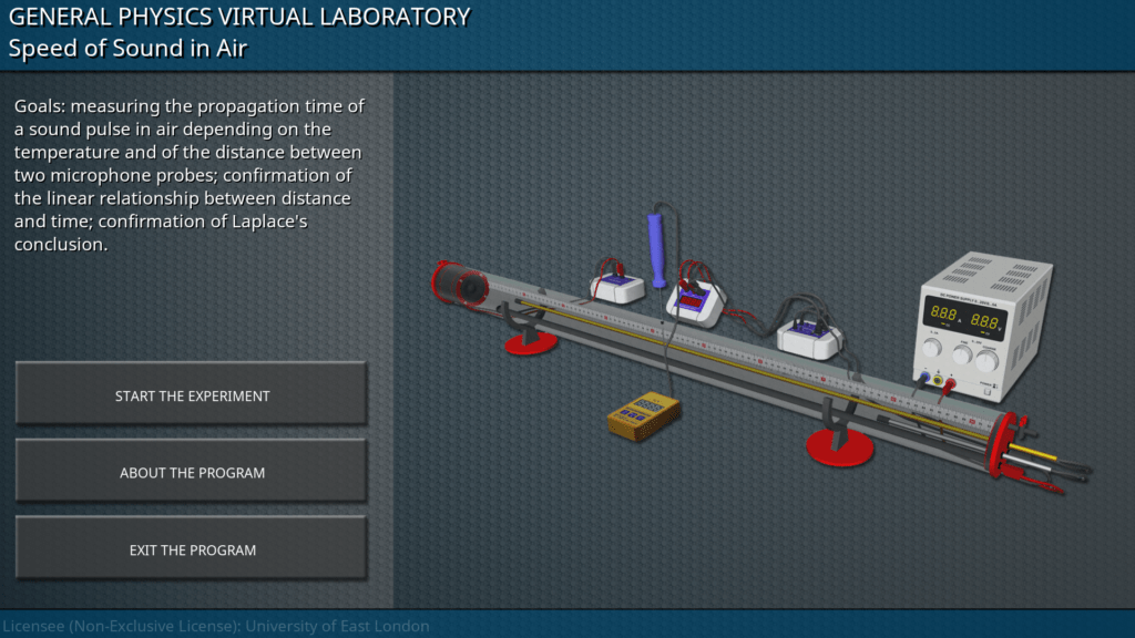 Goals: measuring the propagation time of a sound pulse in air depending on the temperature and of the distance between two microphone probes; confirmation of the linear relationship between distance and time; confirmation of Laplace’s conclusion.