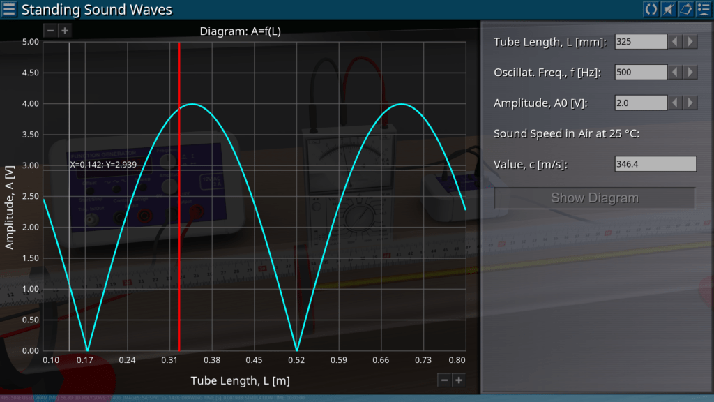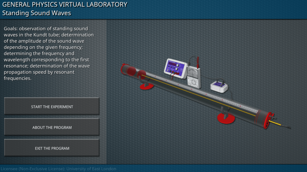 Goals: observation of standing sound waves in the Kundt tube; determination of the amplitude of the sound wave depending on the given frequency; determining the frequency and wavelength corresponding to the first resonance; determination of the wave propagation speed by resonant frequencies.