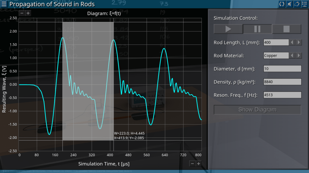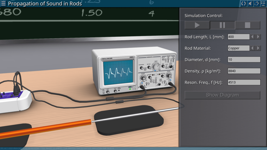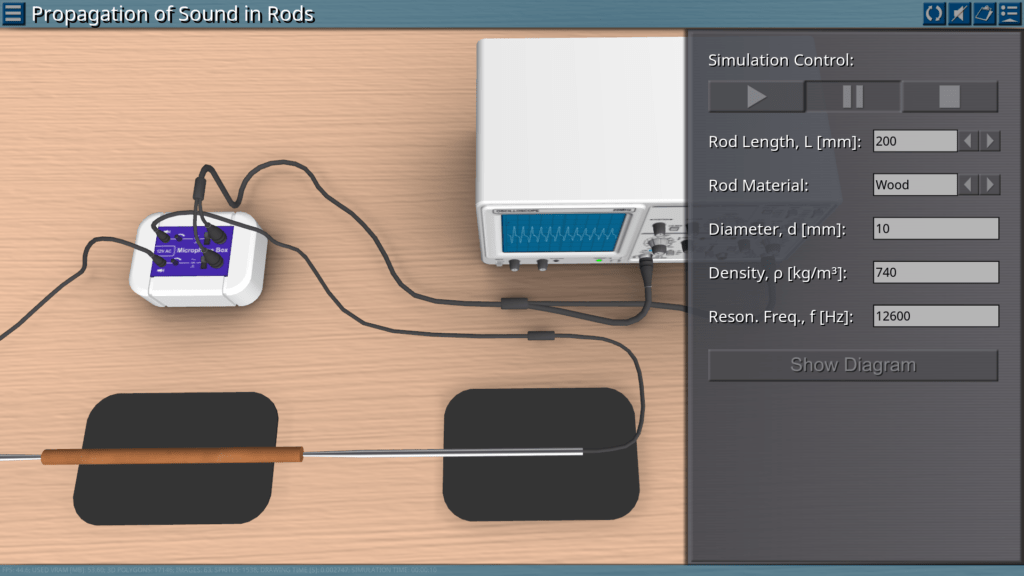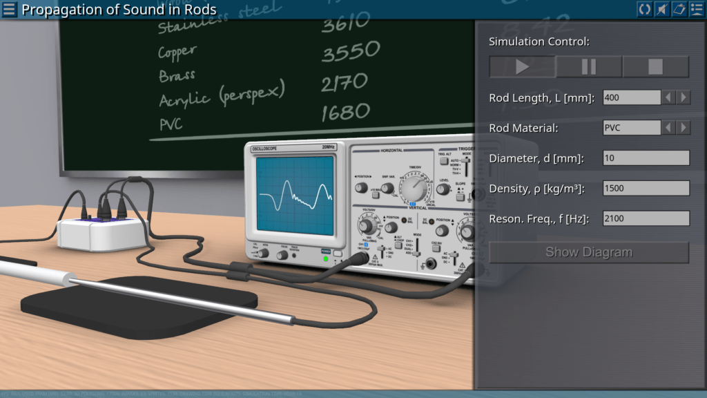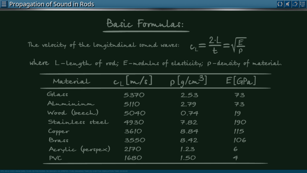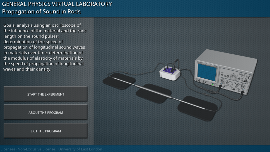 Goals: analysis using an oscilloscope of the influence of the material and the rods length on the sound pulses; determination of the speed of propagation of longitudinal sound waves in materials over time; determination of the modulus of elasticity of materials by the speed of propagation of longitudinal waves and their density.